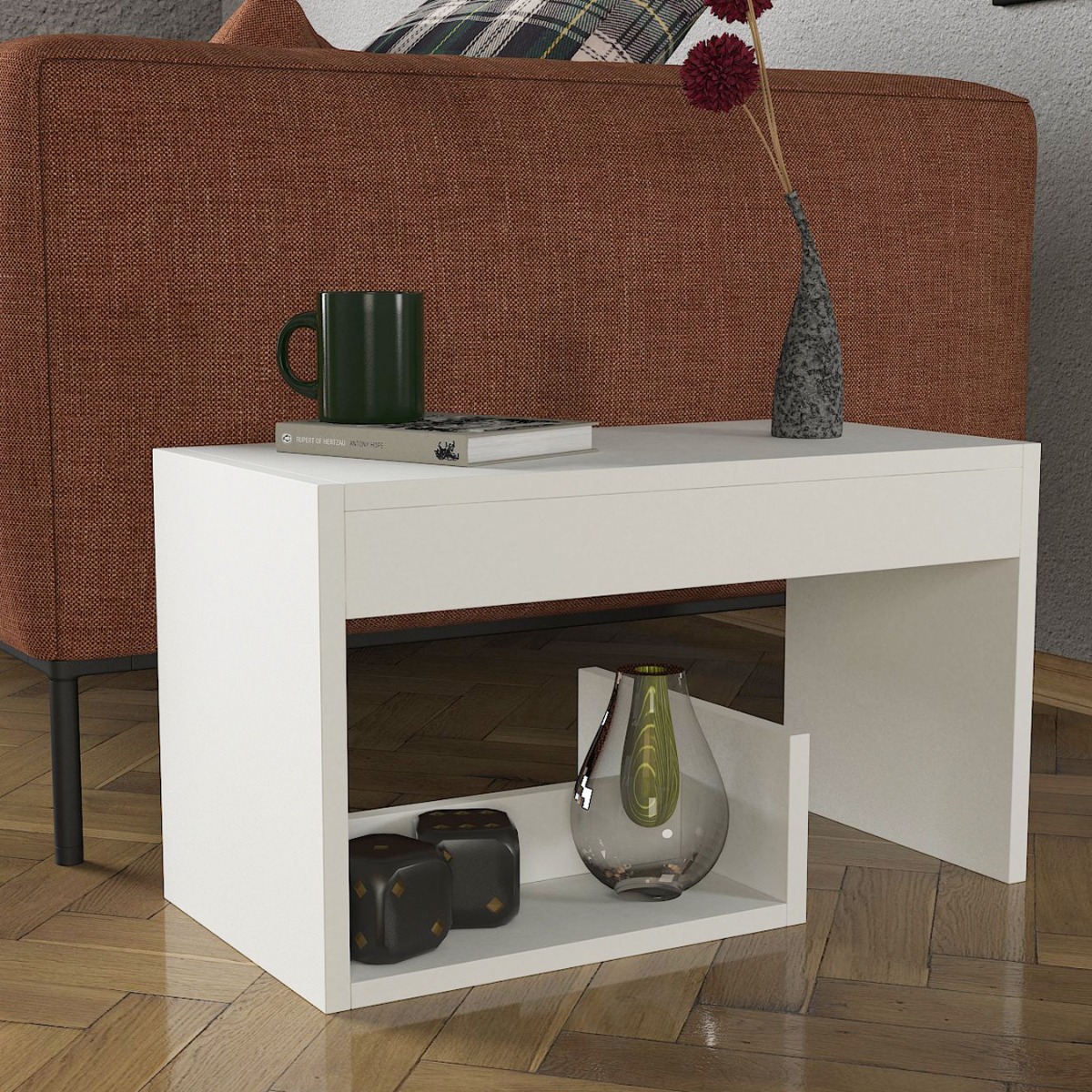 Príručný stolík BROTHERS je v jednoduchom prevedení a zaujímavom tvare, vhodný na odloženie kníh, časopisov a ostatných drobností, ktoré chcete mať vždy po ruke. Zaujímavosťou stolíka je jeho použitie na šírku aj na výšku, takže ho viete využívať presne tak, ako v daný moment potrebujete. Stolík sa ľahko kombinuje s akýmkoľvek nábytkom a vďaka svojmu farebnému prevedeniu sa veľmi dobre hodí do akéhokoľvek štýlu bývania. Materiál: kvalitné LTDFarebné prevedenie: biela matná Rozmery: (š/h/v) 60 x 29,5 x 35 cm (ostatné rozmery v nákrese)Dodávame v demonte.