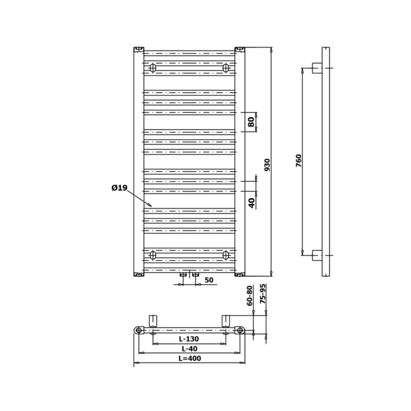 Bruckner – ALBRECHT vykurovacie teleso 400×930 stredové pripojenie, biela 600.111.4