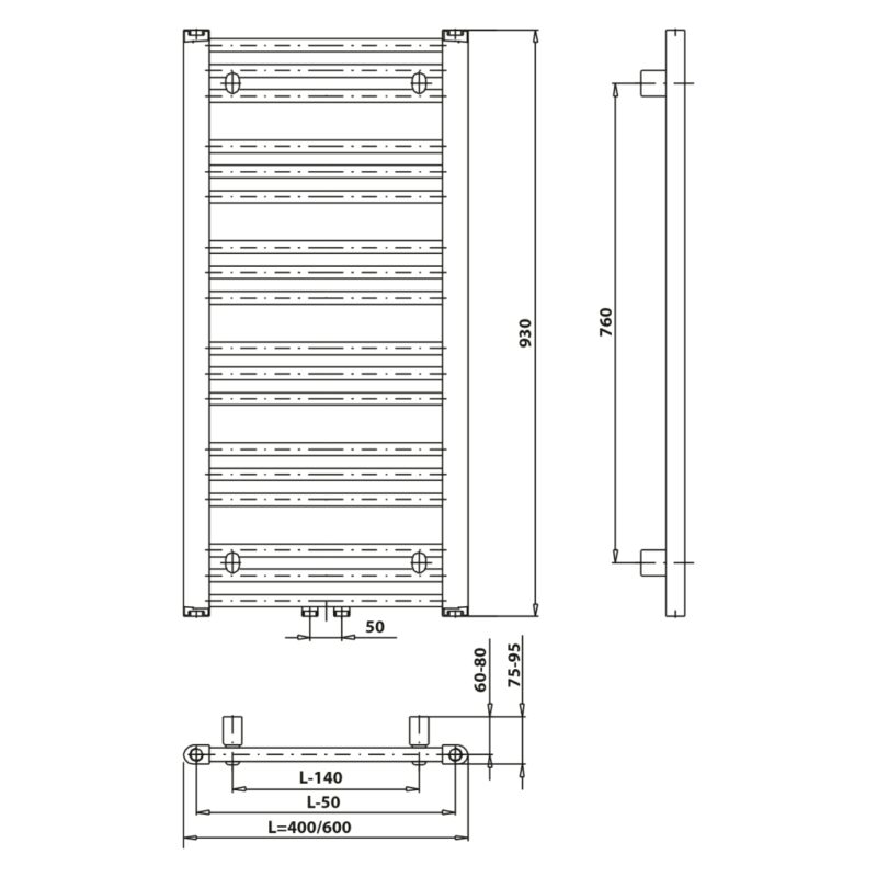 Kombinované pripojenie umožňuje ohrievať teleso ako centrálnym systémom vykurovania, tak využiť pre samostatný ohrev elektrickú vykurovaciu tyč mimo vykurovacej sezóny. Vykurovaciu tyč odporúčame s rovnakým alebo podobným výkonom podľa špecifikácie daného vykurovacieho telesa.