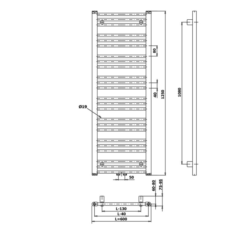 Bruckner – ALBRECHT vykurovacie teleso 600×1250 stredové pripojenie, čierna matná 600.117.6