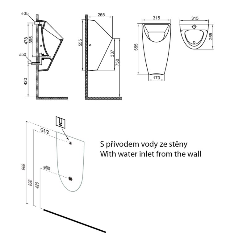 Pre skryté prepojenie prívodu k urinálu odporúčame použiť prepojovaciu trubičku priemer 12mm, kompatibilnú do manžety pisoáru a so závitom ½″ k nástenke.Sifón je súčasťou balenia. Ean: 8590913907609