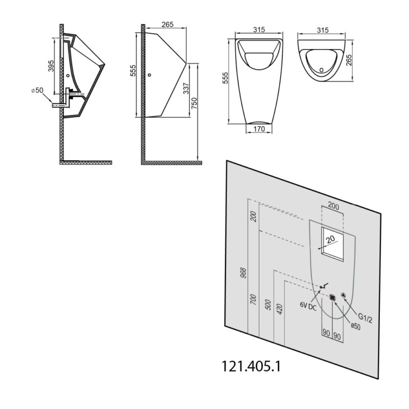 Urinál s integrovaným senzorovým splachovačom spĺňa požiadavky anti vandal a je určený všade tam, kde je požadovaný užívateľský komfort pri maximálnej úspore vody.Parametre:Vstup vody: G1/2″Napájacie napätie: 6V DCZdroj napätia: sieťový zdroj 121.762.1 alebo lítium batéria CR-P2Čas splachovania: 4s za 14s po použitíHygienický preplach každých 12h po poslednom zopnutíTlak vody: 1-10 barPrietok vody 17l/min pri tlaku 3 BarIntenzitu je možné meniť pomocou vstupného ventiluTeplota vody: max. 30°C (nutné chrániť pred mrazom)Balenie obsahuje:Ovládacia elektronika, elektromagnetický ventil, odpadový sifón so snímačom, regulačný ventil Ean: 8590913933578