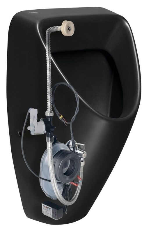 Bruckner – SCHWARN urinál s automatickým splachovačom 6V DC, zakrytý prívod vody, čierna mat 201.722.6