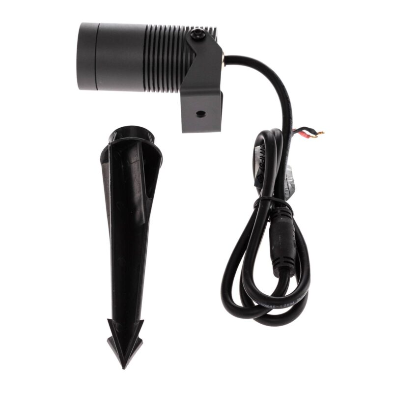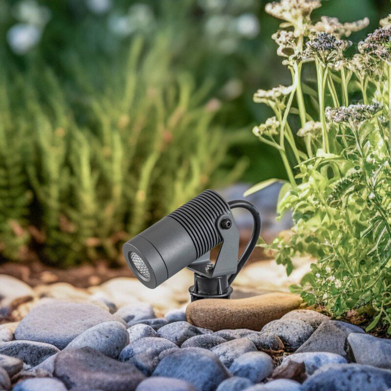 Otočný LED reflektor so zemným hrotom 60109 Reflektor so zemným hrotom 60109 má moderný titánovo sivý vzhľad. Vyznačuje sa valcovou hlavou svietidla vybavenou LED diódami, ktorá je namontovaná tak, aby sa dala otáčať a nasmerovať na požadovanú oblasť. Súčasťou balenia je zemný hrot na ukotvenie do zeme. 100 cm dlhý 24 V pripojovací kábel je vodotesný. – Uhol vyžarovania: 38° – Uhol natočenia: 90° – Trieda ochrany: IP67 – Odolnosť proti nárazu: IK04