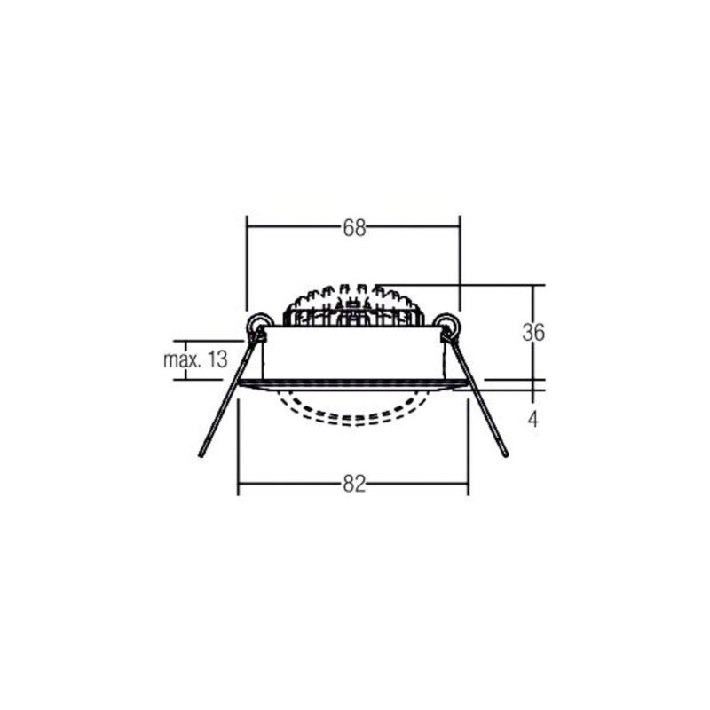 Okrúhle LED vstavané bodové svietidlo BB03, otočné, vrátane LED ovládača Vstavané svietidlo BB03 z hliníka v okrúhlom tvare je vybavené teplými bielymi LED diódami. Tie sú umiestnené v hlavici svietidla, ktorú možno posúvať do všetkých strán, čo umožňuje nasmerovať svetlo podľa potreby. Jednoduchý vzhľad s lesklým reflektorom ladí s modernými koncepciami zariadenia; nad kuchynskou linkou, ako aj na hotelovej chodbe je BB03 vhodným stropným svietidlom. BB03 sa upevňuje do stropného otvoru pomocou priložených montážnych pružín. – Vrátane nestmievateľného LED meniča – Uhol vyžarovania: 38° – Rozsah natočenia: 30° dookola – Hrúbka stropu: max. 1,3 cm – Bez krytu s tepelnoizolačným materiálom