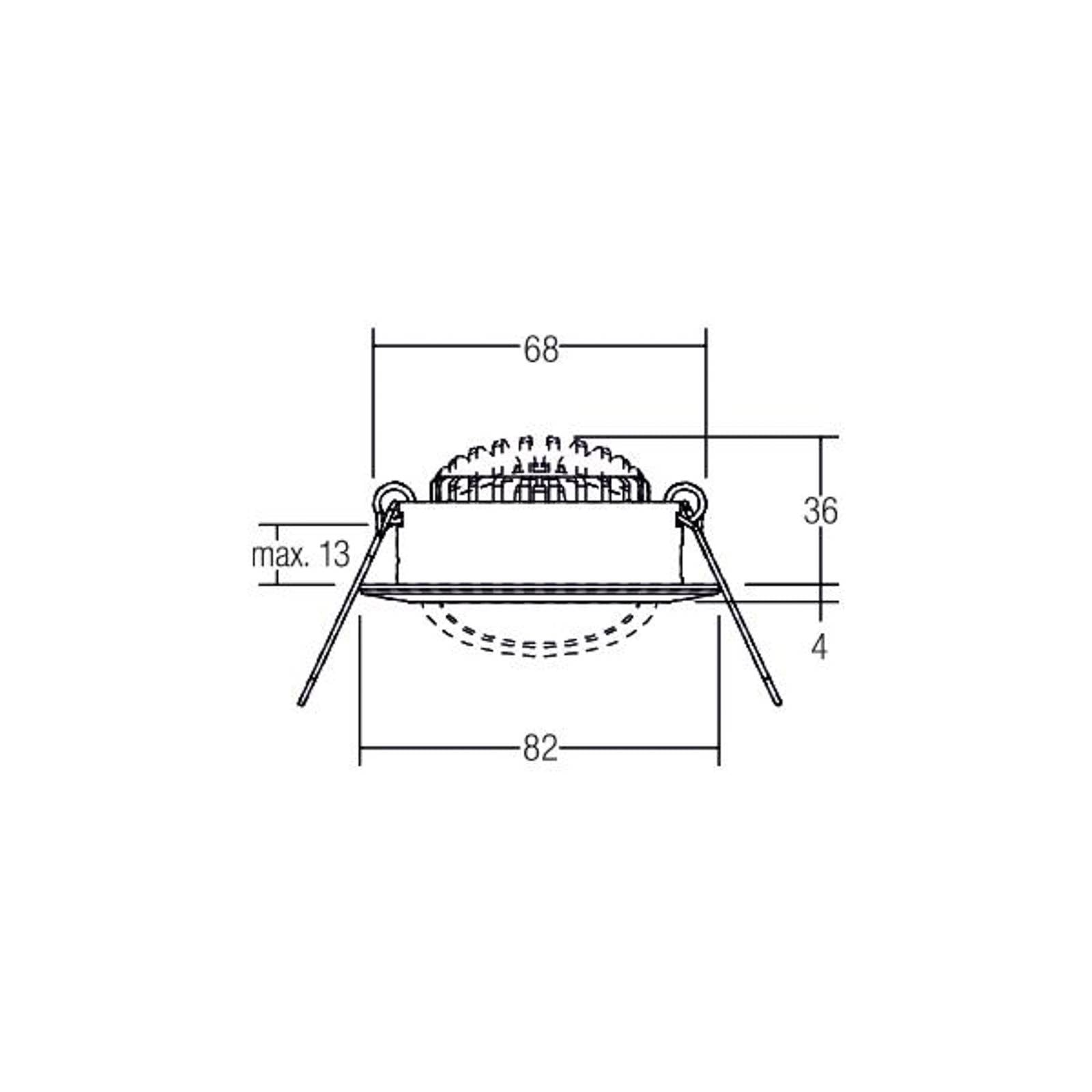 LED vstavané bodové svietidlo BB03 s ovládačom s možnosťou stmievania DALI a pripojovacou krabicou Táto okrúhla súprava LED vstavaného bodového svietidla pozostáva z bodového svietidla s hlavou svietidla, ktorú možno nakláňať o 30° vo všetkých smeroch, ovládača LED s možnosťou stmievania DALI a pripojovacej krabice. Stropné svietidlo sa dá namontovať bez použitia náradia pomocou montážnych pružín. Je vybavený strieborným reflektorom s hlbokým širokým rozptylom svetla a priehľadným polykarbonátovým krytom – s elektronickou, stmievateľnou riadiacou jednotkou DALI-2 – s pripojovacou krabicou – prípustná teplota okolia -20 až 25 °C – uhol vyžarovania 38° – maximálna hrúbka stropu 1,3 cm – bez krytu s tepelnoizolačným materiálom