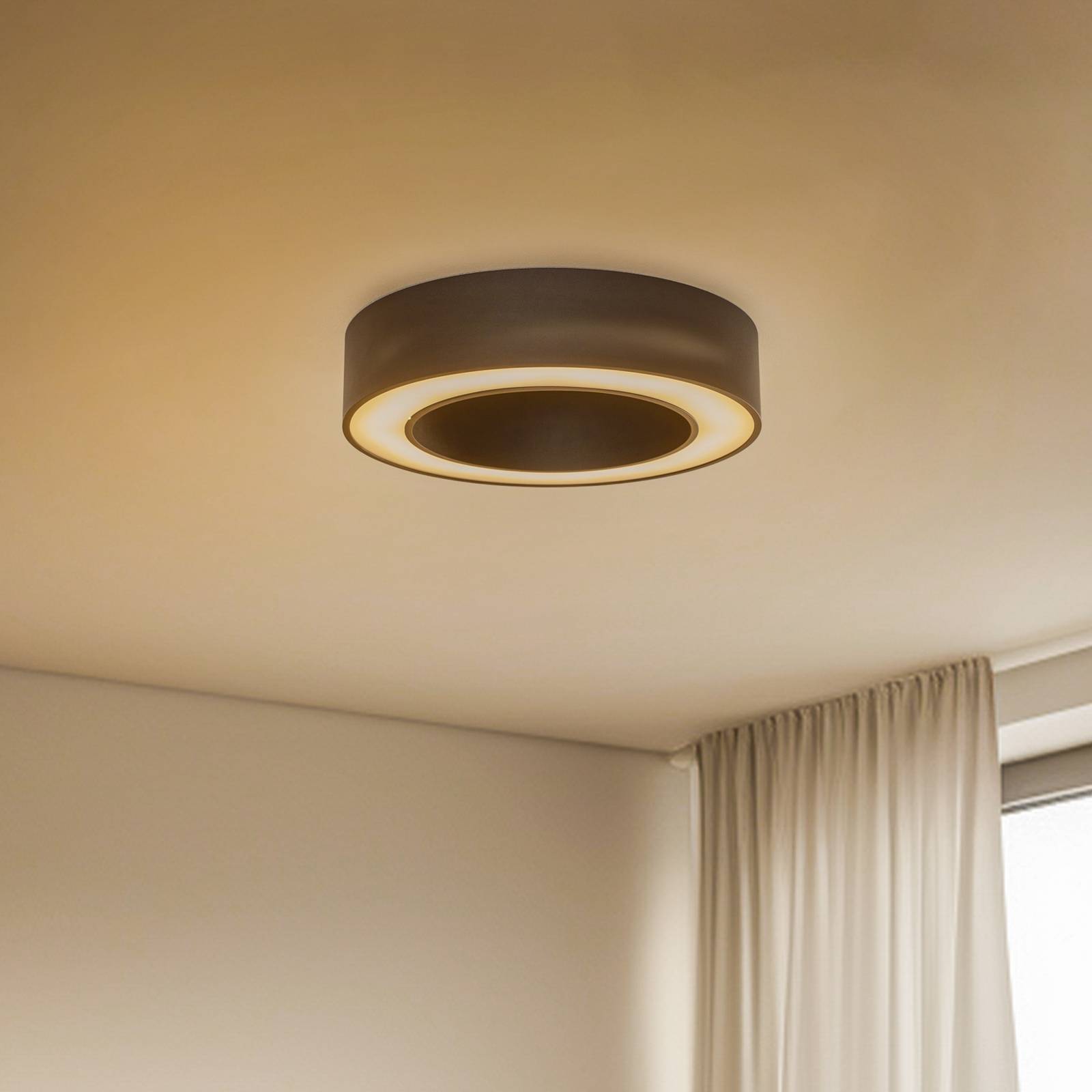 Neoslňujúce stropné svietidlo Biro Circle LED, stmievateľné cez DALI Ako už názov napovedá, stropné svietidlo Biro Circle LED má tvar kruhu a je vyrobené z vysokokvalitného hliníka, ocele a odolného plastu. Jeho opálovo biely kryt zabezpečuje, že nedochádza k efektu oslnenia. Široký uhol vyžarovania v spojení s integrovanými výkonnými LED diódami zabezpečuje aj dobré rozloženie svetla a celkové dobré osvetlenie miestnosti. A vďaka modernému dizajnu a prvotriednemu spracovaniu vyzerá Biro Circle veľmi elegantne aj vo vypnutom stave – Tolerancia umiestnenia farby (počiatočná MacAdam): 3 – Veľmi široký uhol vyžarovania (108°) – Neoslňuje vďaka opálovému krytu – Ovládacie zariadenie je súčasťou dodávky – Externe stmievateľné prostredníctvom DALI