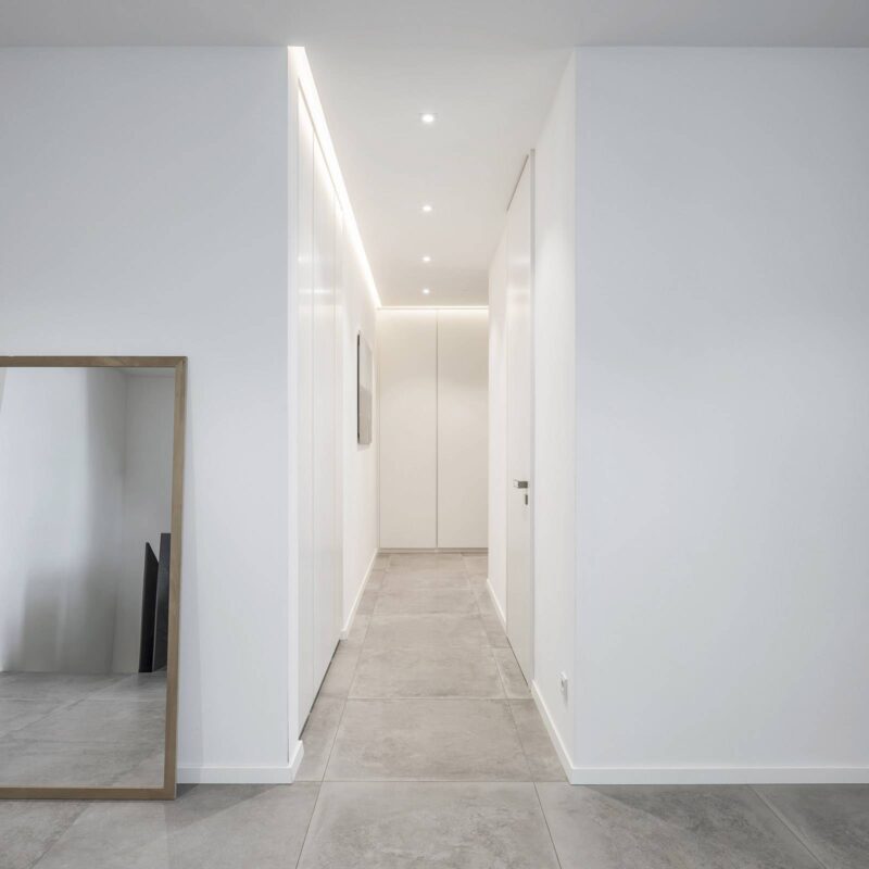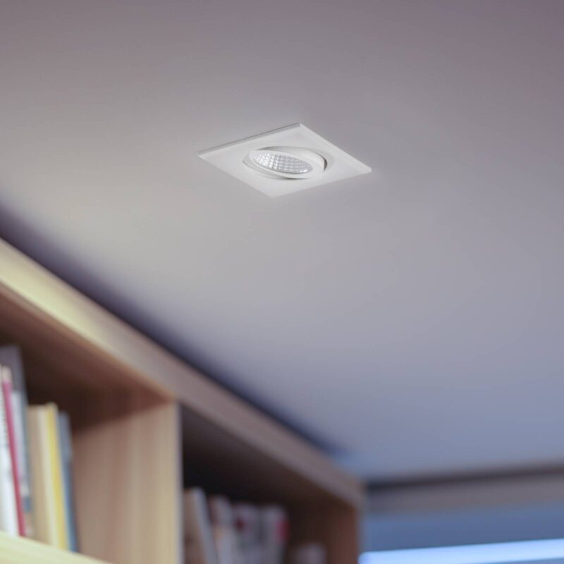 Štvorcové zapustené bodové svietidlo LED s nastaviteľnou hlavou – stmievanie a zahrievanie Toto zapustené stropné svietidlo je z hľadiska svojho vzhľadu a funkčnosti úplne aktuálne. Štvorcový rám z hliníka obsahuje okrúhlu hlavu svietidla, ktorá sa dá otáčať o 360°, a preto sa dá nastaviť podľa potreby. Okrem toho je možná prevádzka s externými stmievačmi, vďaka čomu môže stropné svietidlo poskytovať jasné plošné osvetlenie na chodbe, ako aj tlmené, obzvlášť teplé svetlo pri sledovaní televízie. – LED konvertor je súčasťou dodávky; externe stmievateľný cez fázovú časť – stmievanie: 3 000 K pri maximálnom svetelnom výkone, 1 800 K pri minimálnom svetelnom výkone – Uhol lúča: 38° – Rozsah otáčania: 30° dookola – Hrúbka stropu: max. 1,3 cm