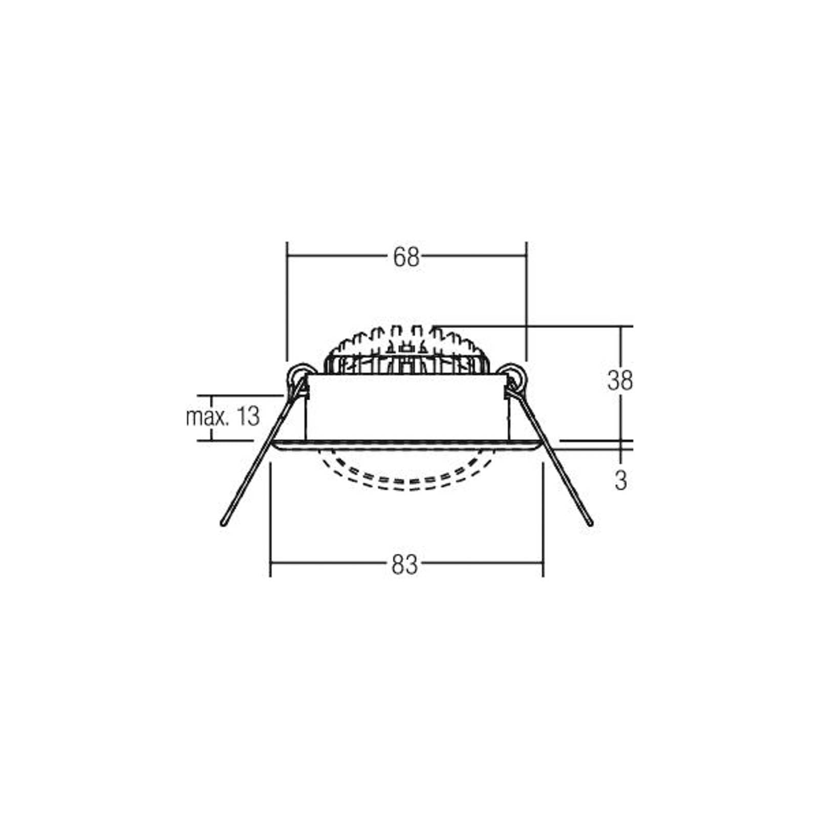 Zapustené LED reflektory BB09, otočné, s vypínateľným LED ovládačom a pripojovacou krabicou Okrúhle zapustené LED reflektory BB09 z nehrdzavejúcej ocele a hliníka s priehľadným plastovým krytom sú vybavené teplými bielymi LED diódami. Tie sú umiestnené v hlavici svietidla, ktorú možno posúvať do všetkých strán, aby sa zabezpečilo smerovanie svetla podľa potreby. Vďaka vybaveniu strieborným reflektorom s rotačne symetrickým rozložením svetla do hĺbky a priehľadným krytom je svetlo optimálne rozložené. Jednoduché zapustené bodové svietidlo harmonizuje s modernými koncepciami nábytku a je ideálnym stropným svietidlom pre komerčné a súkromné priestory, napríklad nad kuchynskou linkou, na chodbe alebo v obývacej izbe. Vďaka inštalačným pružinám možno zapustené bodové svietidlo namontovať bez použitia náradia – s pripojovacou krabicou, 3-pólové na priechodné zapojenie – vrátane nestmievateľného, elektronického ovládacieho zariadenia – uhol vyžarovania: 38° – rozsah otáčania: 25° dookola – nesmie byť zakryté tepelnoizolačným materiálom