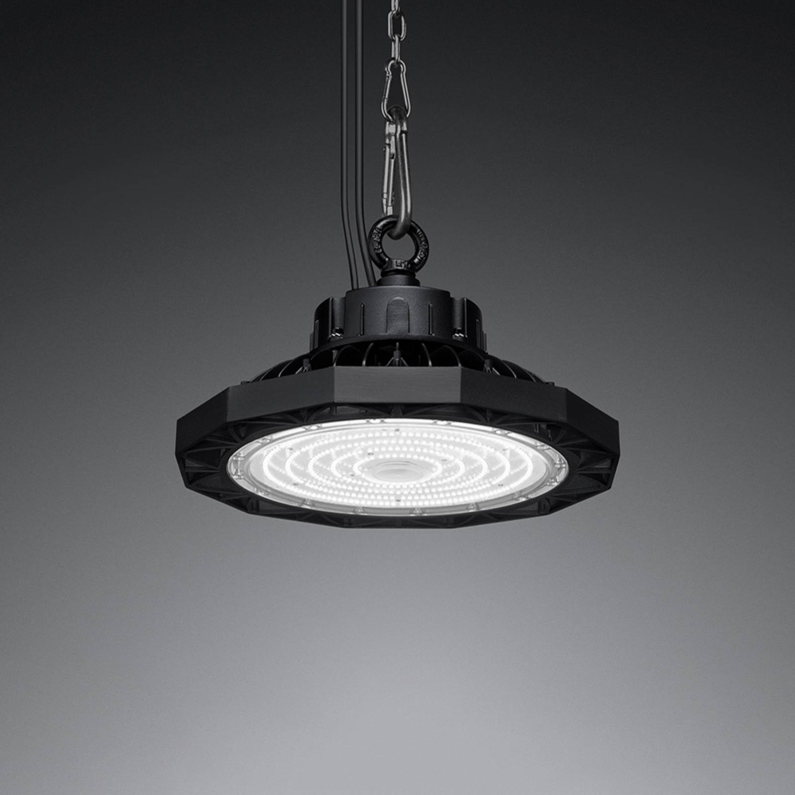 Vysokoúčinné svietidlo Sol highbay LED highbay so stmievaním DALI Svietidlo Sol highbay LED lowbay zabezpečuje mimoriadne dobré a symetrické rozloženie svetla vďaka rotačne symetrickému úzkoúhlému LED modulu. Napriek malým rozmerom sú aj veľké haly spoľahlivo zaplavené univerzálnym bielym svetlom. Vďaka napájacej jednotke, ktorá je súčasťou dodávky, možno toto svietidlo stmievať aj externe prostredníctvom DALI-2. Highbay LED svietidlo Sol je veľmi robustné a odolné vďaka vysokokvalitnému hliníku a polykarbonátu. Dizajn bez zbytočností podčiarkuje efektívnosť tohto svietidla s nízkym výklenkom a prvotriedne spracovanie je tiež zrejmé. Optimálne sa hodí na použitie v priemyselných zariadeniach aj preto, že neobsahuje žiadne toxické látky, ako je ortuť. – extrémne široký uhol vyžarovania (120°) – tolerancia umiestnenia farby (pôvodný MacAdam): 4 – odolnosť proti prachu a proti prúdom vody (IP65) – vysoká odolnosť proti nárazom a otrasom (IK09) – vrátane napájacej jednotky pre napätie 230 V, skrutkovacieho upevňovacieho oka a pripojovacieho kábla (150 cm) – prostredníctvom príslušenstva sú k dispozícii reťazové závesy a rôzne optické prvky