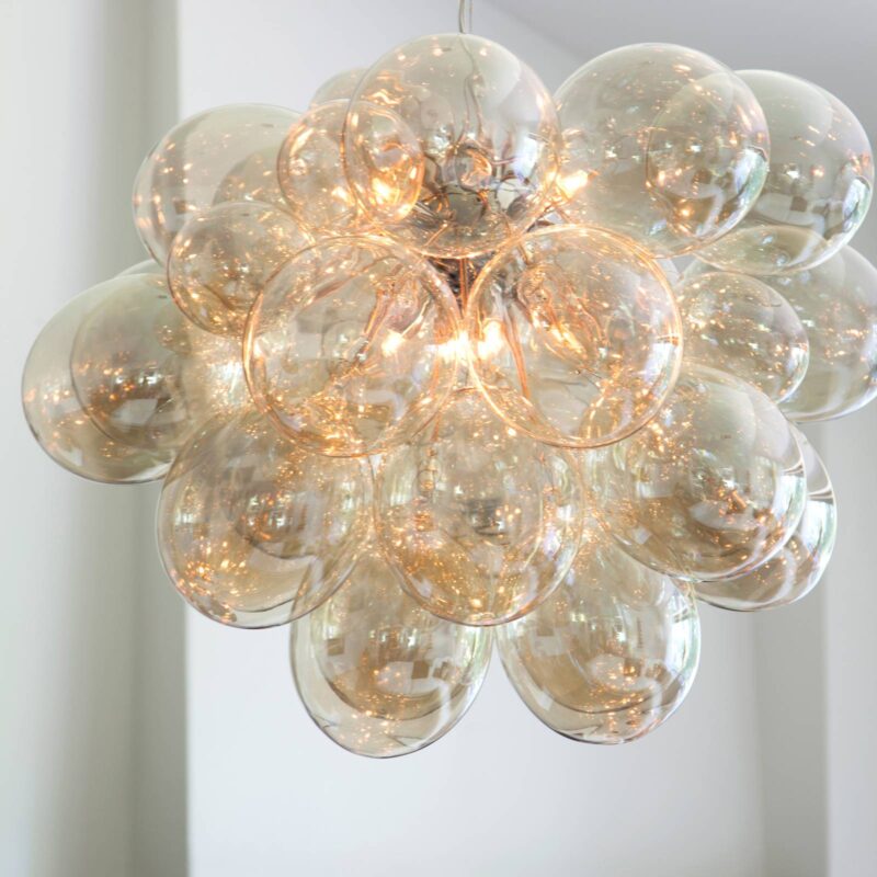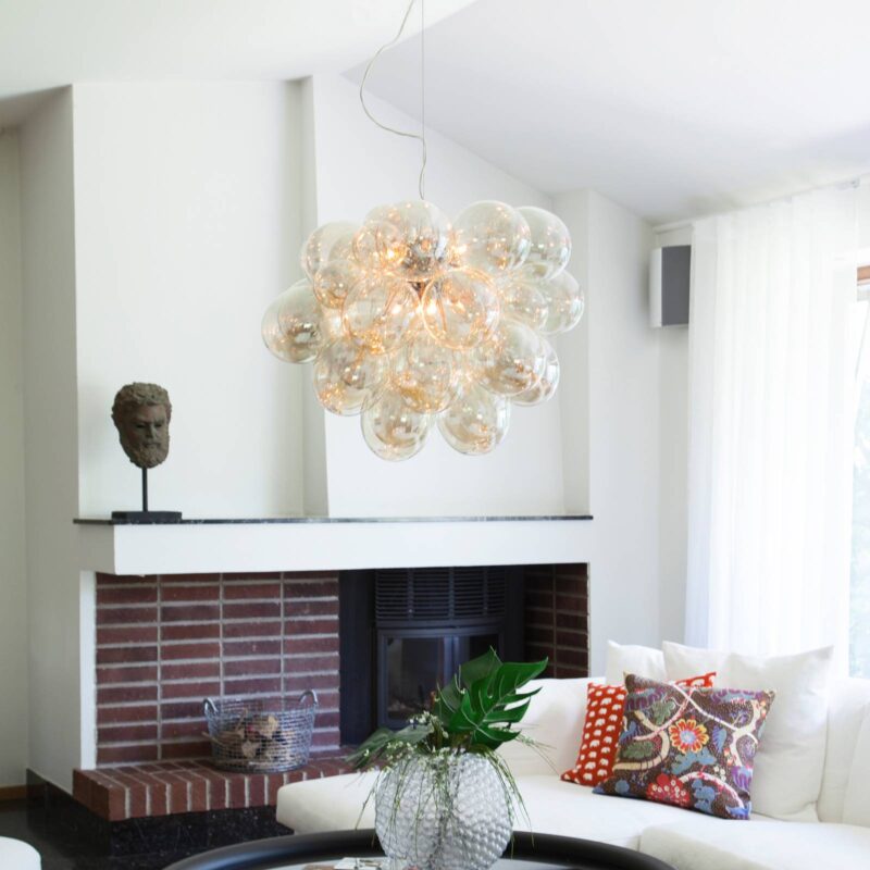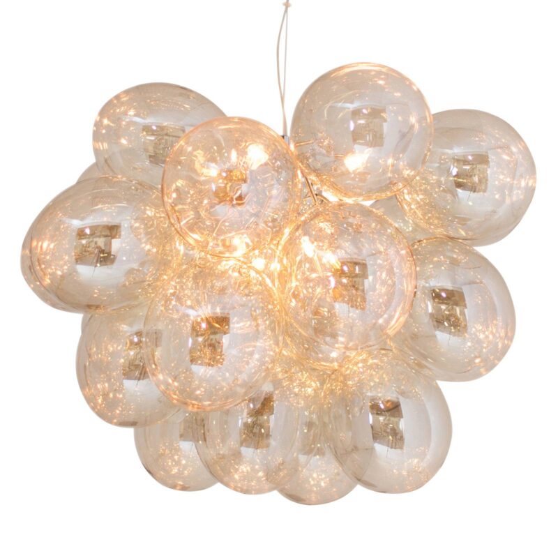 Sklenené gule ako mydlové bubliny: Tienidlo závesného svietidla Gross Grande vyzerá ako súbor mnohých mydlových bublín alebo ako zhluk niekoľkých malých balónov, ktoré sa v skutočnosti nedajú nazvať tienidlom v klasickom zmysle slova. Svietidlo je samo o sebe umeleckým dielom, pričom zdroje svetla sú dômyselne ukryté medzi sklenenými guľami. Celkovo osem objímok pre žiarovky G9 zabezpečuje osvetlenie a zároveň iskru a lesk, ktoré toto závesné svietidlo šíri v miestnosti.