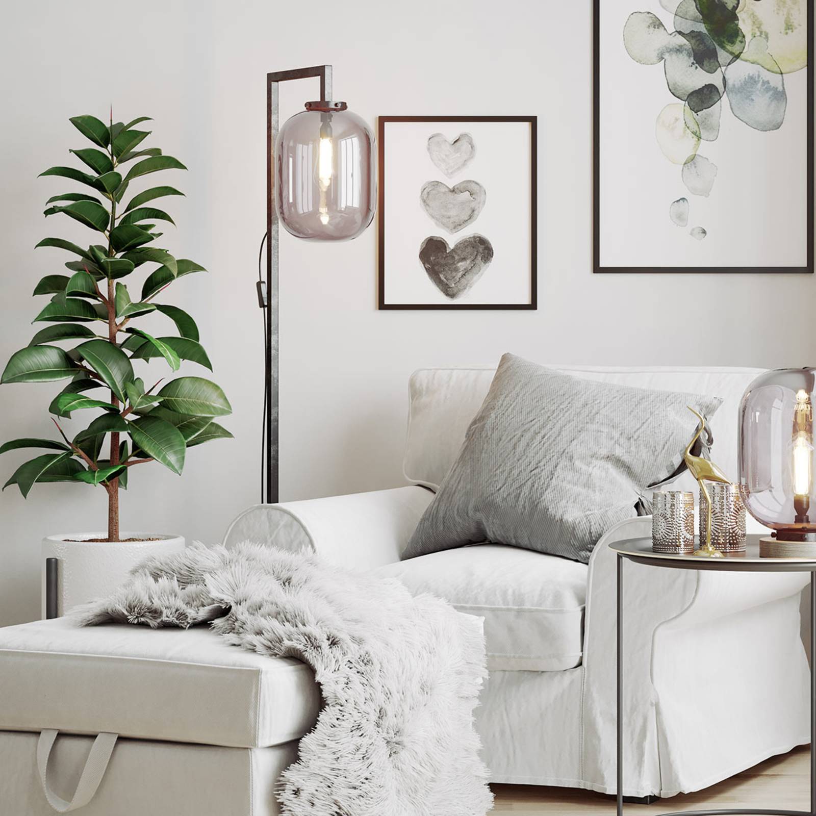 By Rydéns Leola sklenená stojaca lampa dymová sivá