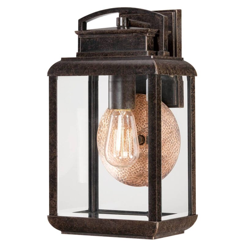 Neobvyklé nástenné svietidlo Byron na osvetlenie fasády Popri svojej hlavnej úlohe – napr. B. na bezpečné nočné osvetlenie vchodu do domu – tiež dekoratívna funkcia pre celú nehnuteľnosť. Vonkajšie nástenné svietidlo Byron plní obe úlohy vynikajúco. Počas dňa je kontrast medzi tónom tmavého bronzu v ráme a medeným sklom za žiarovkou veľmi dekoratívny; plné kúzlo sa rozvinie po zapnutí osvetlenia. Potom sú tu pekné odlesky a veľmi príjemné okolité osvetlenie, ktoré je požadované pre každú nehnuteľnosť.