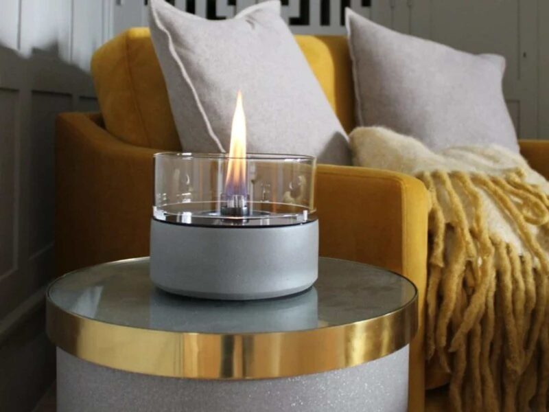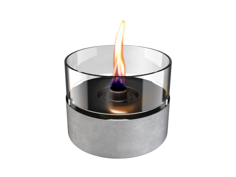 Svietnik Café Concrete Ceramic, s elegantnou 18 cm okrúhlou základňou z odolnej keramiky MgO a lesklým skleneným vrchom, ponúka nielen vizuálne potešenie, ale aj praktickosť a čisté, bezdymové horenie bez zápachu a sadzí.