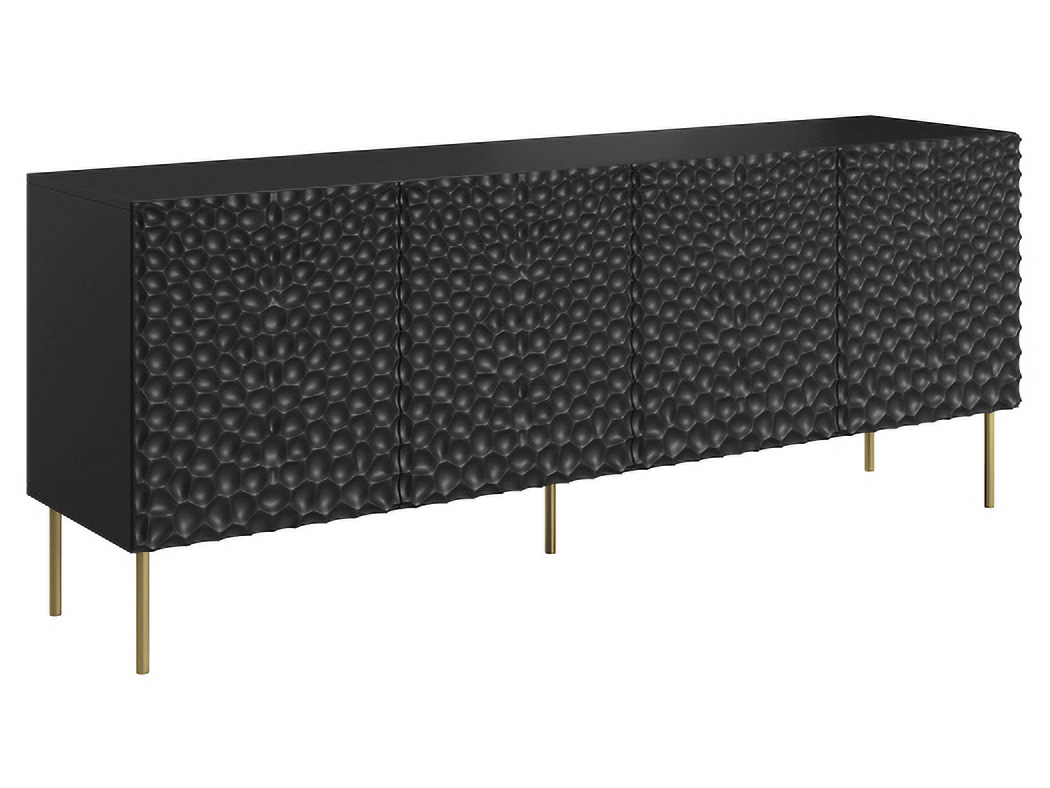 Nechajte sa očariť moderným a jedinečným dizajnom štvordverovej komody HOLE 190, ktorá bude skvelým doplnkom vo Vašej domácnosti. Má elegantný a nadčasový dizajn, ktorý nezostane nepovšimnutý. Čierne farebné prevedenie so zaujímavým tvarom povrchu dvierok dodávajú komode originalitu a jedinečnosť.…