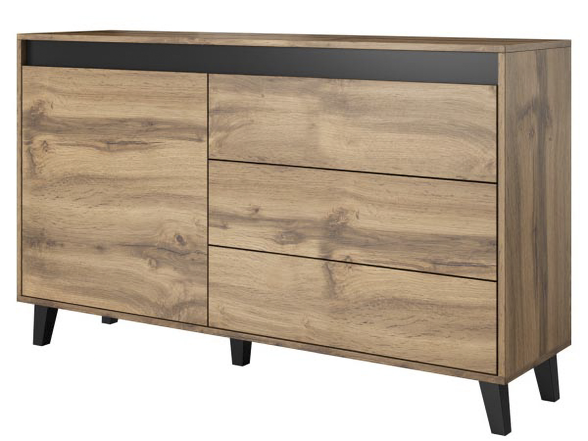 CAMA MEBLE Nord jednodverová komoda so zásuvkami dub wotan / antracit / čierna