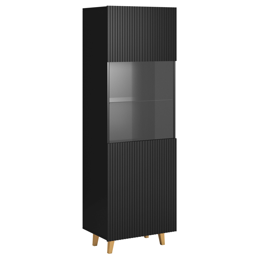 Vitrína PAFOS je ideálnym riešením do Vášho interiéru. Kombinácia čiernej s viditeľnými zárezmi dodávajú vitríne luxusný dizajn. Vnútorné vybavenie je prakticky rozložené na štyri police, pričom stredná polica je sklenená. Otváranie uľahčuje jednoduchý spôsob potiahnutím za dvierka. Dvierka sú…