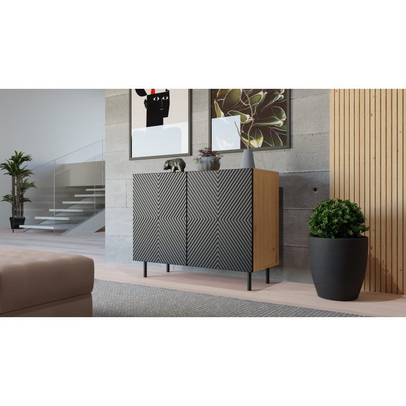 CAMILA 2K moderná dvojdverová komoda, čierna / dub Artisan