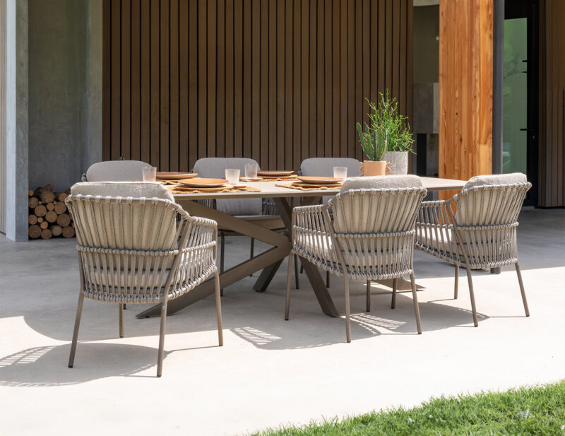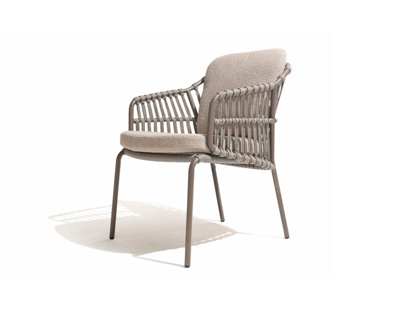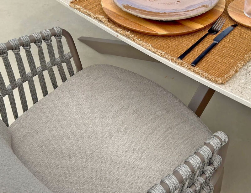 Capalbio jedálenská stolička v sebe spája eleganciu a praktickosť. Pevná hliníková konštrukcia a štýlový rope výplet zabezpečujú stabilitu aj vizuálnu ľahkosť. Pohodlný sedák umožňuje komfortné sedenie pri každom stolovaní v exteriéri.