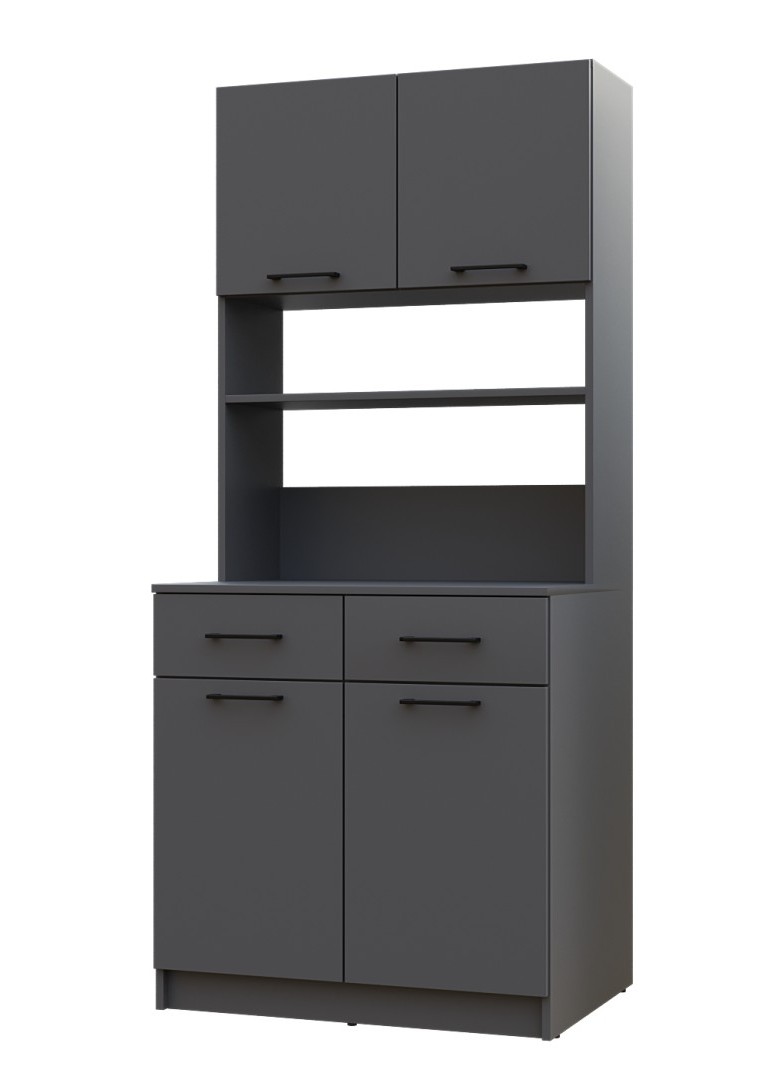 CAPSULE samostatná kuchynská skrinka je ideálnym kúskom do vašej kuchyne, ktorá poslúži na zväčšenie úložného priestoru a v kuchyni pôsobí štýlovo a nadčasovo. Skrinka CAPSULE je kompaktným riešením aj pre malé byty, štúdiá, kancelárie alebo hotelové izby. Vďaka premyslenej organizácii priestoru je kuchyňa vybavená dvoma uzavretými a dvoma otvorenými policami, praktickým priestorom pre mikrovlnnú rúru a praktickými zásuvkami na odkladanie vecí. CAPSULE kombinuje funkčnosť a moderný dizajn a harmonicky dopĺňa akýkoľvek interiér.Vlastnosti:Materiál: 16 mm LTDFarebné prevedenie: grafitRozmery: V/Š/H 185 x 60 x 32/60 cmNábytok je dodávaný v demonte s prehľadným návodom na montáž.