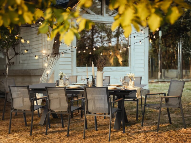 Oživte svoj exteriér elegantným záhradným stolom Carson v antracitovom prevedení s variabilnou dĺžkou stolovej dosky od 240 cm do 300 cm a odolným hliníkovým rámom.