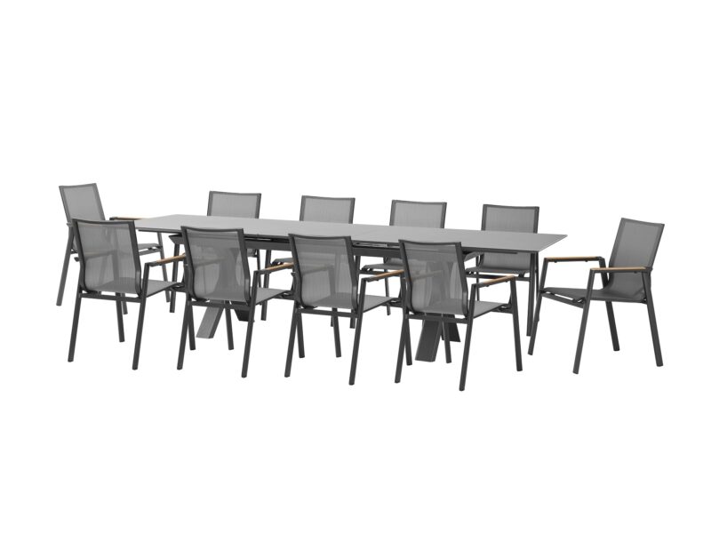 Oživte svoj exteriér elegantným záhradným stolom Carson v antracitovom prevedení s variabilnou dĺžkou stolovej dosky od 280 cm do 340 cm a odolným hliníkovým rámom.