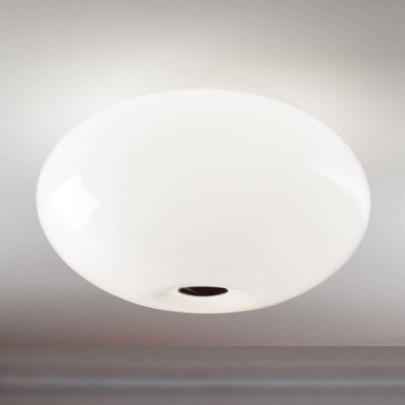 Stropné svietidlo AIH. Dizajn stropného svietidla AIH je dokonalou jednoduchosťou, ktorá vďaka miernej abstrakcii vytvára mimoriadny záujem. Svietidlo je navrhnuté ako okrúhle teleso zo skla – fúkaného ústami, ako si to vyžaduje tradícia. Už len vďaka tejto jemnej základnej forme dokáže toto stropné svietidlo zdokonaliť miestnosť. Mierne zakrivenie smerom dovnútra v strede tienidla však treba považovať za výnimočné. Čierne sfarbenie stredu svietidla dodáva tomuto výrobku ďalší pútavý prvok; použitie brúseného hliníka na montážne komponenty pridáva ďalší vysokokvalitný materiál. tento výrobca ponúka svietidlá, ktoré sú vyrobené v Nemecku a sú vyrobené podľa vysokých štandardov kvality v manufaktúre na výrobu svietidiel, ktorá existuje od roku 1980. Osobitné a opakujúce sa vlastnosti spočívajú v použití skla, ktoré je prevažne fúkané ústami podľa starej tradície, a v kovových povrchoch – väčšinou hliníkových – ktoré sú ručne zušľachtené, aby získali svoj špecifický vzhľad. V priebehu tohto výrobného procesu vznikajú svietidlá, ktoré majú vždy moderný vzhľad a veľmi individuálny charakter.