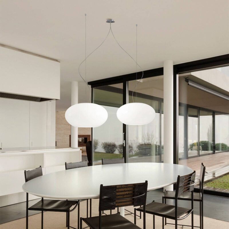 Závesné svietidlo s dvoma plameňmi AIH. Dizajn závesného svietidla AIH je dokonalosťou jednoduchosti. Lampa je navrhnutá ako okrúhle telo zo skla – fúkaného ústami, ako si to vyžaduje tradícia. Už len vďaka tomuto jemnému základnému tvaru dokáže táto závesná lampa zdokonaliť miestnosť. Tento tvar totiž umožňuje vynikajúce všestranné osvetlenie. Použitie brúseného hliníka na extrémne filigránske, takmer neviditeľné montážne komponenty pridáva ďalší vysokokvalitný materiál. tento výrobca ponúka svietidlá, ktoré sú vyrobené v Nemecku a sú vyrobené podľa vysokých štandardov kvality v manufaktúre na výrobu svietidiel, ktorá existuje od roku 1980. Osobitné a opakujúce sa vlastnosti spočívajú v použití skla, ktoré je prevažne fúkané ústami podľa starej tradície, a v kovových povrchoch – väčšinou hliníkových – ktoré sú ručne zušľachtené, aby získali svoj špecifický vzhľad. V priebehu tohto výrobného procesu vznikajú svietidlá, ktoré majú vždy moderný vzhľad a veľmi individuálny charakter.