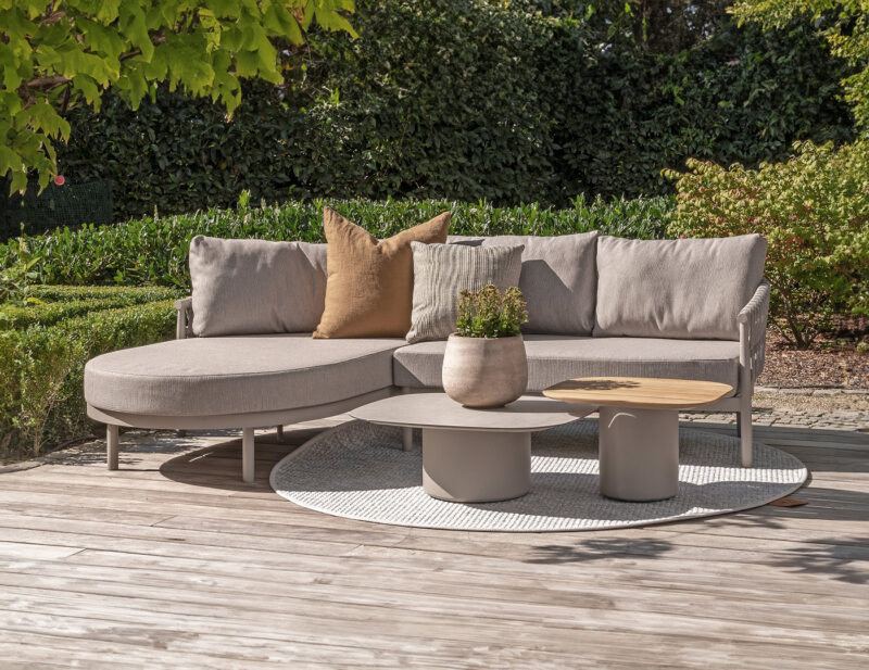 Vytvorte si dokonalú oázu pohody so sedacou súpravou Catalana Demi. Spája nadčasovú sedaciu súpravu s dvojicou štýlových stolíkov Demi s teakovou a keramickou doskou. Ideálne miesto na oddych v exteriéri.