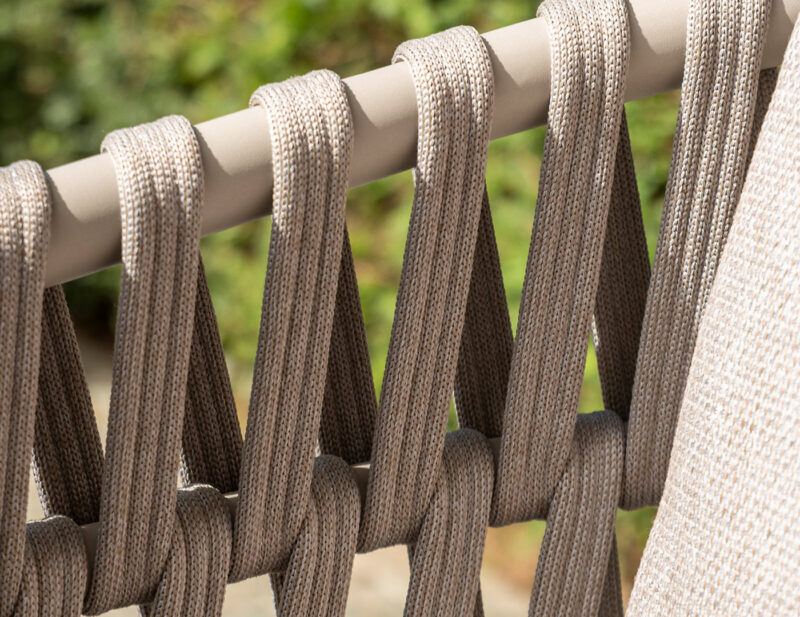 Catalana jedálenská stolička prináša spojenie moderného dizajnu a pohodlia. Vyrobená z pevného hliníkového rámu s výrazným širokým rope výpletom, poskytuje stabilitu a štýlový vzhľad. Ideálna pre exteriérové stolovanie na terase či záhrade.