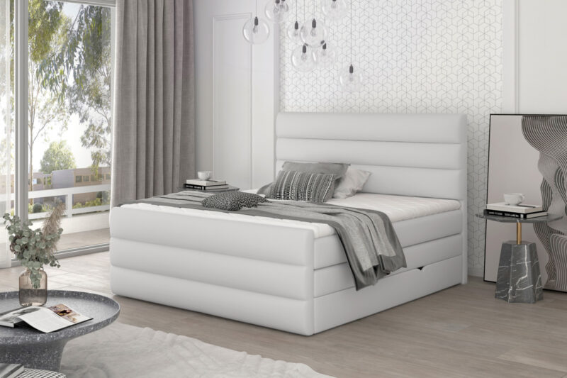 Posteľ CATARINE patrí medzi boxspringové postele v modernom dizajnovom prevedení. Dominantným prvkom je horizontálne prešitie na prednom aj zadnom čele postele, ktoré zvýrazňuje celkový výzor postele a robí ju výnimočnou. Výška ložnej plochy poskytne pohodlné vstávanie a sadanie na posteľ. Okrem efektného dizajnu oceníte aj spracovanie v najvyššej kvalite. Viacvrstvové matrace (viď obrázok prierezu) zaručia kvalitný spánok a zvýšené pohodlie. Jeden matrac postele je pružinový, druhý je z bonellovej pružiny, kombinovaný s PUR penou T25. Pre ešte lepší pocit je súčasťou postele horný topper T3030. Poťah je hypoalergénny, snímateľný a prateľný pri 40 ℃. Oceníte 2 úložné boxy, ktoré sú pod každým lôžkom. Využívajú UP systém otvárania, vďaka ktorému sa jednoduchým spôsobom dostanete ku predmetom uloženým v boxoch. Posteľ je celočalúnená kvalitnou eko-kožou Soft 17.Rozmery (š/v/h): 140 x 133 x 220 cm. Výška ložnej plochy je 63 cm. Hrúbka zadného čela je 13 cm. Posteľ sa predáva kompletná, nie je potrebné doobjednávať rošt ani matrac. Tvrdosť matraca: H3.V našej ponuke nájdete aj ďalšie rozmery a farebné prevedenia tejto unikátnej postele.