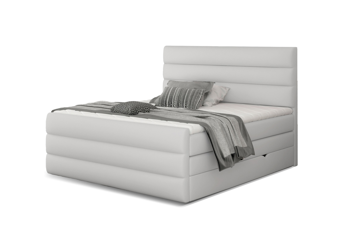 Posteľ CATARINE patrí medzi boxspringové postele v modernom dizajnovom prevedení. Dominantným prvkom je horizontálne prešitie na prednom aj zadnom čele postele, ktoré zvýrazňuje celkový výzor postele a robí ju výnimočnou. Výška ložnej plochy poskytne pohodlné vstávanie a sadanie na posteľ. Okrem efektného dizajnu oceníte aj spracovanie v najvyššej kvalite. Viacvrstvové matrace (viď obrázok prierezu) zaručia kvalitný spánok a zvýšené pohodlie. Jeden matrac postele je pružinový, druhý je z bonellovej pružiny, kombinovaný s PUR penou T25.  Pre ešte lepší pocit je súčasťou postele horný topper T3030. Poťah je hypoalergénny, snímateľný a prateľný pri 40 ℃. Oceníte 2 úložné boxy, ktoré sú pod každým lôžkom. Využívajú UP systém otvárania, vďaka ktorému sa jednoduchým spôsobom dostanete ku predmetom uloženým v boxoch. Posteľ je celočalúnená kvalitnou eko-kožou Soft 17.Rozmery (š/v/h): 160 x 133 x 220 cm. Výška ložnej plochy je 63 cm. Hrúbka zadného čela je 13 cm. Posteľ sa predáva kompletná, nie je potrebné doobjednávať rošt ani matrac. Tvrdosť matraca: H3.V našej ponuke nájdete aj ďalšie rozmery a farebné prevedenia tejto unikátnej postele.