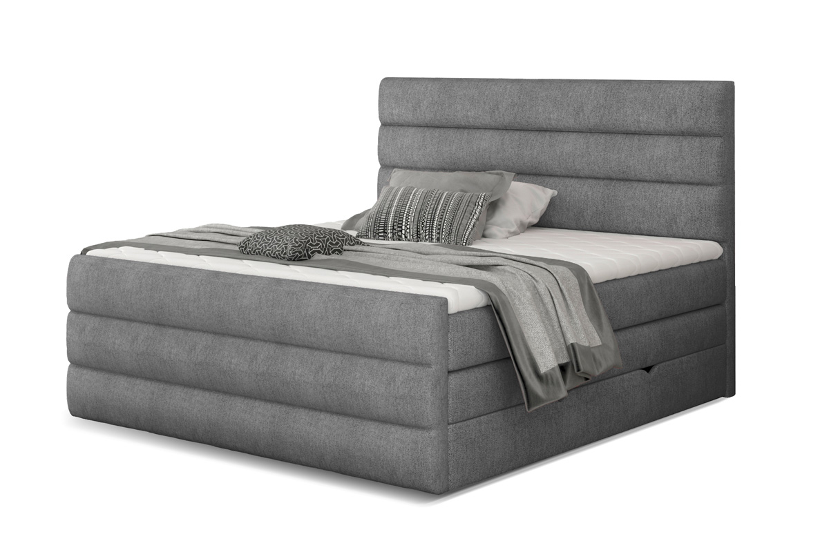Posteľ CATARINE patrí medzi boxspringové postele v modernom dizajnovom prevedení. Dominantným prvkom je horizontálne prešitie na prednom aj zadnom čele postele, ktoré zvýrazňuje celkový výzor postele a robí ju výnimočnou. Výška ložnej plochy poskytne pohodlné vstávanie a sadanie na posteľ. Okrem efektného dizajnu oceníte aj spracovanie v najvyššej kvalite. Viacvrstvové matrace (viď obrázok prierezu) zaručia kvalitný spánok a zvýšené pohodlie. Jeden matrac postele je pružinový, druhý je z bonellovej pružiny, kombinovaný s PUR penou T25.  Pre ešte lepší pocit je súčasťou postele horný topper T3030. Poťah je hypoalergénny, snímateľný a prateľný pri 40 ℃. Oceníte 2 úložné boxy, ktoré sú pod každým lôžkom. Využívajú UP systém otvárania, vďaka ktorému sa jednoduchým spôsobom dostanete ku predmetom uloženým v boxoch. Posteľ je celočalúnená kvalitnou látkou Omega 13.Rozmery (š/v/h): 160 x 133 x 220 cm. Výška ložnej plochy je 63 cm. Hrúbka zadného čela je 13 cm. Posteľ sa predáva kompletná, nie je potrebné doobjednávať rošt ani matrac. Tvrdosť matraca: H3.V našej ponuke nájdete aj ďalšie rozmery a farebné prevedenia tejto unikátnej postele.