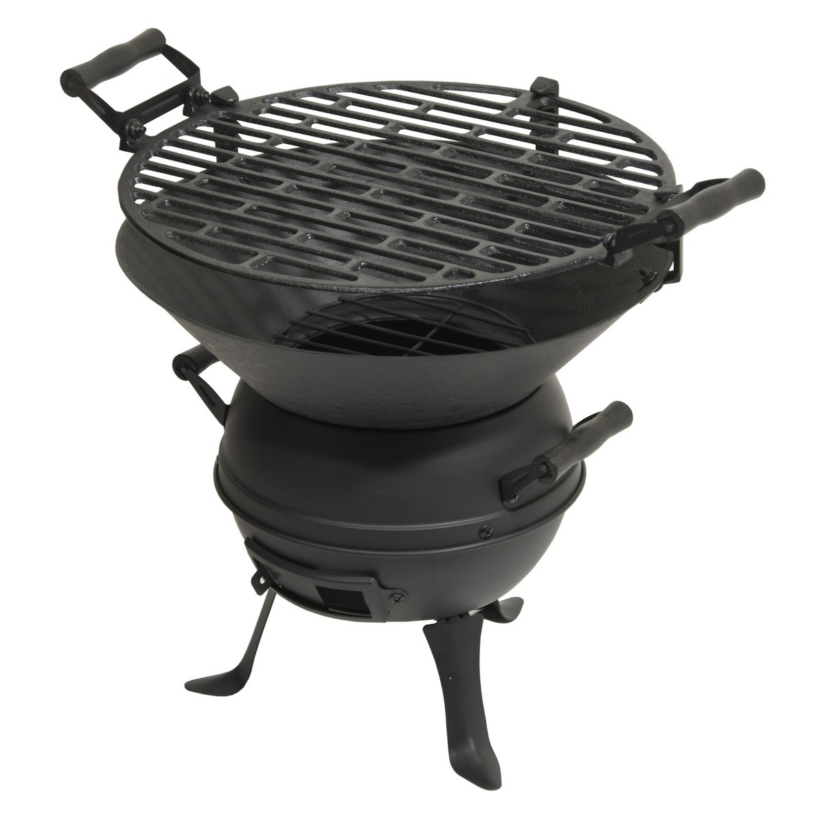 Prenosný gril KETTLE pre záhrady a terasy, ale aj na ryby a výlety. Konštrukcia je vyrobená z liatiny s čierneným povrchom. Drevené úchyty zaistia pohodlný úchop pre nastavenie roštu alebo prenášanie celého zariadenia. Stabilitu zaisťujú tri kovové nohy pripevnené ku grilu v spodnej časti. Gril je ďalej v spodnej časti vybavený regulovateľnou ventiláciou. Na samotnú tepelnú prípravu potravín je gril vybavený výškovo nastaviteľným roštom z liatiny.Technické parametre: