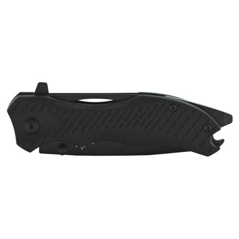 Ľahký a ergonomicky tvarovaný nôž je ideálnym spoločníkom na kempovanie, rybárčenie aj ďalšie outdoorové aktivity, kde oceníte jeho praktickosť a odolnosť. Čepeľ z kvalitnej nehrdzavejúcej ocele SS420 o dĺžke 8 cm a hrúbke 2,8 mm zaisťuje vynikajúcu odolnosť proti korózii, čo robí tento nôž perfektnou voľbou aj do nepriaznivého a vlhkého prostredia. Oceľ si zachováva ostrosť aj pri náročnom používaní a ľahko sa udržiava.Pre jednoduché a rýchle otváranie jednou rukou je nôž vybavený praktickým výstupkom na hornej časti čepele. Bezpečnosť pri používaní zaisťuje spoľahlivá poistka, ktorú možno pohodlne ovládať bočným posunutím palca v spodnej časti rukoväti.Zadná časť noža je vybavená otváračom fliaš, ktorý oceníte pri oddychu v prírode, a tiež úderníkom pre núdzové rozbitie skla.Rukoväť noža je vyrobená z jemného materiálu imitujúceho povrch kameňa, ktorý nielen dobre vyzerá, ale tiež zabezpečuje príjemný úchop. Ergonomicky tvarované střenky umožňujú, aby nôž perfektne padol do ruky, a poskytujú maximálne pohodlie aj pri dlhšom používaní.Technické údaje: