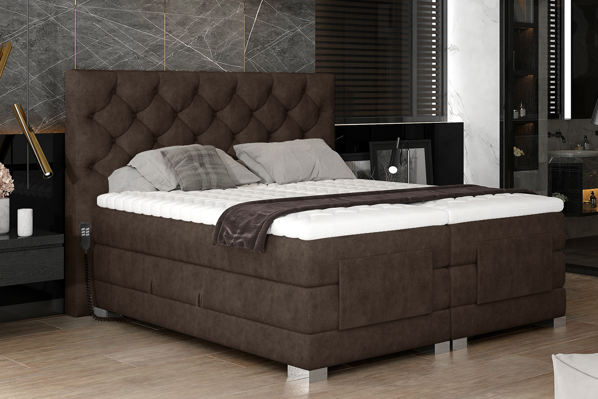 CEDRIK je výnimočná posteľ v luxusnom prevedení. Patrí medzi vysoké boxspringové postele, ktoré ponúkajú jednoduché vstávanie a sadanie na posteľ. Spacia plocha 160 x 200 cm je rozdelená na dve lôžkové časti. Elektricky nastaviteľný rám s diaľkovým ovládaním dáva možnosť polohovania matraca pri hlave aj pri nohách (viď foto). Každé lôžko má samostatný ovládač a môže si nastaviť ideálnu polohu podľa vlastných požiadaviek. Najvýraznejším dizajnovým prvkom je vyvýšené čelo postele, ktoré poskytne pohodlnú opierku hravy a ochráni stenu pred oderom. Zaujímavý je aj dizajn predného čela. Jednofarebné prevedenie dáva možnosť variabilnej kombinácie s ďalším nábytkom či farbami.Posteľ ponúka viac vrstiev matracov. Spodný matrac je vyrobený z bonellovej pružiny, stredový je pocketový. Pre zabezpečenie ešte vyššieho komfortu je súčasťou postele horný topper, ktorý tvorí PUR pena T2542. Posteľ je celočalúnená kvalitnou látkou Dora 28.Rozmery (š/v/h): 178 x 130 x 217 cm. Výška ložnej plochy je 67 cm. Hrúbka zadného čela je 15 cm. Matrac je obojstranný. Poťah je hypoalergénny, snímateľný a prateľný pri 40 ℃. Tvrdosť postele je H3. Posteľ sa predáva kompletná, nie je potrebné doobjednávať rošt ani matrac.Posteľ CEDRIK Vám poskytne komfort, pohodlie a štýlový dizajn. V našej ponuke nájdete aj ďalšie rozmery a farebné prevedenia tejto unikátnej postele.