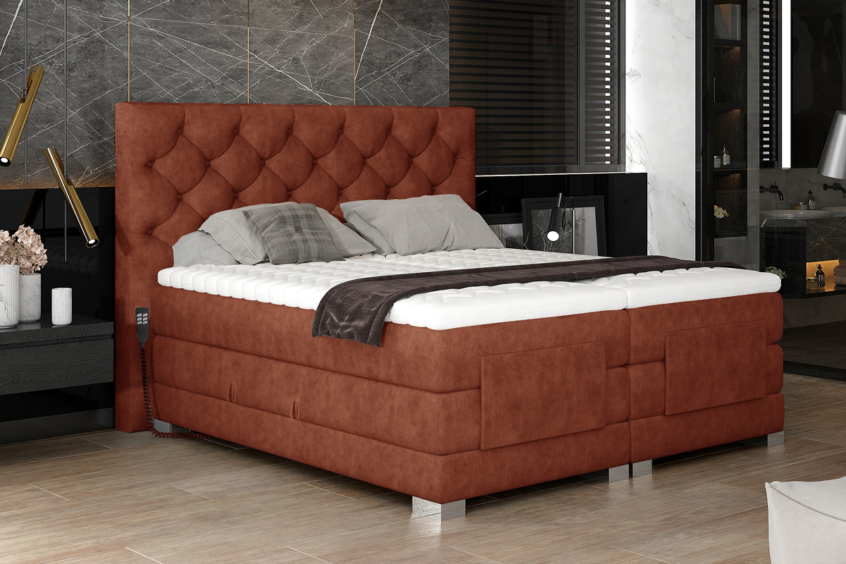 CEDRIK je výnimočná posteľ v luxusnom prevedení. Patrí medzi vysoké boxspringové postele, ktoré ponúkajú jednoduché vstávanie a sadanie na posteľ. Spacia plocha 160 x 200 cm je rozdelená na dve lôžkové časti. Elektricky nastaviteľný rám s diaľkovým ovládaním dáva možnosť polohovania matraca pri hlave aj pri nohách (viď foto). Každé lôžko má samostatný ovládač a môže si nastaviť ideálnu polohu podľa vlastných požiadaviek. Najvýraznejším dizajnovým prvkom je vyvýšené čelo postele, ktoré poskytne pohodlnú opierku hravy a ochráni stenu pred oderom. Zaujímavý je aj dizajn predného čela. Jednofarebné prevedenie dáva možnosť variabilnej kombinácie s ďalším nábytkom či farbami.Posteľ ponúka viac vrstiev matracov. Spodný matrac je vyrobený z bonellovej pružiny, stredový je pocketový. Pre zabezpečenie ešte vyššieho komfortu je súčasťou postele horný topper, ktorý tvorí PUR pena T2542. Posteľ je celočalúnená kvalitnou látkou Dora 63.Rozmery (š/v/h): 178 x 130 x 217 cm. Výška ložnej plochy je 67 cm. Hrúbka zadného čela je 15 cm. Matrac je obojstranný. Poťah je hypoalergénny, snímateľný a prateľný pri 40 ℃. Tvrdosť postele je H3. Posteľ sa predáva kompletná, nie je potrebné doobjednávať rošt ani matrac.Posteľ CEDRIK Vám poskytne komfort, pohodlie a štýlový dizajn. V našej ponuke nájdete aj ďalšie rozmery a farebné prevedenia tejto unikátnej postele.