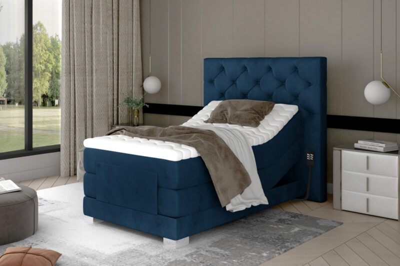 CEDRIK je výnimočná posteľ v luxusnom prevedení so spacou plochou 90 x 200 cm. Patrí medzi vysoké boxspringové jednolôžka, ktoré ponúkajú jednoduché vstávanie a sadanie na posteľ. Elektricky nastaviteľný rám s diaľkovým ovládaním dáva možnosť polohovania matraca pri hlave aj pri nohách (viď foto). Vďaka tomu si viete nastaviť ideálnu polohu podľa vlastných požiadaviek. Najvýraznejším dizajnovým prvkom je vyvýšené čelo postele, ktoré poskytne pohodlnú opierku hravy a ochráni stenu pred oderom. Zaujímavý je aj dizajn predného čela. Jednofarebné prevedenie dáva možnosť variabilnej kombinácie s ďalším nábytkom či farbami.Posteľ ponúka viac vrstiev matracov. Spodný matrac je vyrobený z bonellovej pružiny, stredový je pocketový. Pre zabezpečenie ešte vyššieho komfortu je súčasťou postele horný topper, ktorý tvorí PUR pena T2542. Posteľ je celočalúnená kvalitnou látkou Monolith 77.Rozmery (š/v/h): 108 x 130 x 217 cm. Výška ložnej plochy je 67 cm. Hrúbka zadného čela je 15 cm. Matrac je obojstranný. Poťah je hypoalergénny, snímateľný a prateľný pri 40 ℃. Tvrdosť postele je H3. Posteľ sa predáva kompletná, nie je potrebné doobjednávať rošt ani matrac.Posteľ CEDRIK Vám poskytne komfort, pohodlie a štýlový dizajn. V našej ponuke nájdete aj ďalšie rozmery a farebné prevedenia tejto unikátnej postele.