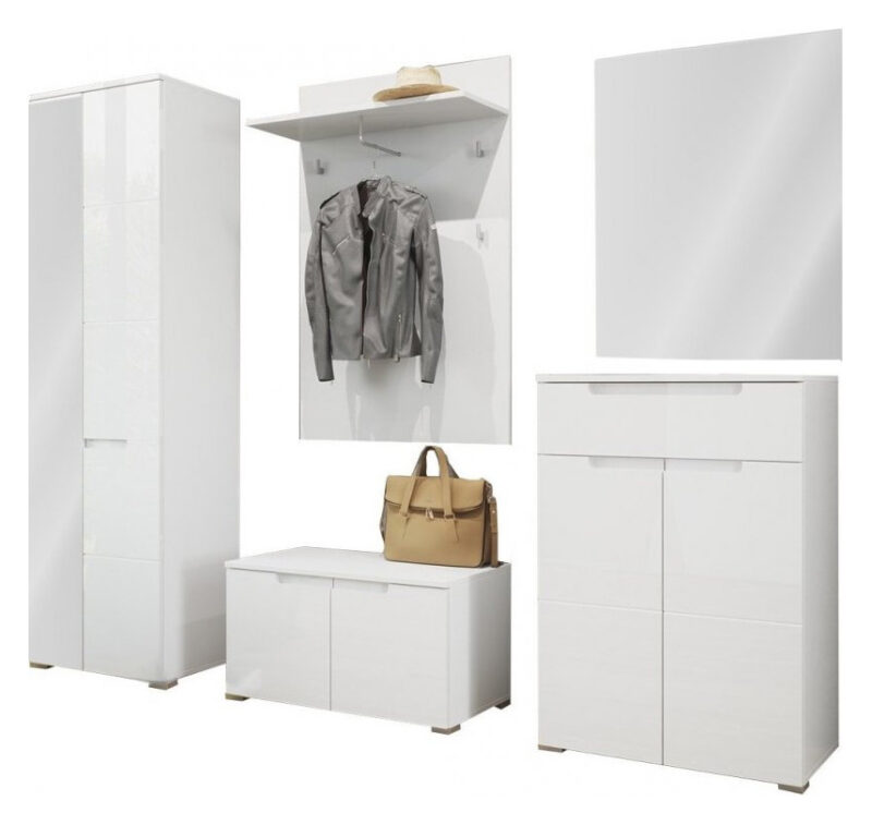 CELENE predsieň je idelálny nábytok do chodby, či vstupnej haly. Tento unikátny nábytok s jemnými líniami a čistými tvarmi Vám ponúka priestor na odloženie búnd, kabátov, topánok či iných drobností. Jednoduchý tvar a rovné línie vytvárajú unikátny nábytok v príjemnej a čistej bielej farbe, kombinovanej s bielym leskom. Tento nábytok oceníte aj vďaka tomu, že sa dá ľahko kombinovať a farebne zladiť. Nábytok je vyrobený z kvalitnej MDF dosky , ktorá je odolná proti poškodeniu. Zostava sa skladá z nasledovných prvkov:1. Skriňa so zrkadlom CELENE, ktorá obsahuje viacero políc a jednú vešiakovú tyč. Rozmery š/v/h: 60/198/40 cm2. Vešiakový panel CELENE. Rozmery š/v/h: 79/119/30 cm3. Zrkadlo CELENE. Jeho obdĺžnikový tvar so strieborným odtieňom perfektne zapadá do každého interiéru a zároveň pridáva mu moderný charakter. Rozmery š/v/h: 70/89/2 cm4. Skrinka CELENE, ktorá má predelený úložný priestor. Rozmery š/v/h: 79/43/40 cm5. Vysoká skrinka CELENE je vybavená priestrannou zásuvkou a má vo vnútri police. Takéto rozdelenie uľahčuje segregáciu vecí a pomáha udržať poriadok v miestnosti. Rozmery š/v/h: 70/101/40 cm.Farba:korpus: biela matnápredná časť: biely lesk.V našej ponuke nájdete aj ďalšie prvky zo sektoru CELENE. Dodávame v demontovanom stave. Rozmery š/v/h 140 / 22 / 67 cm.