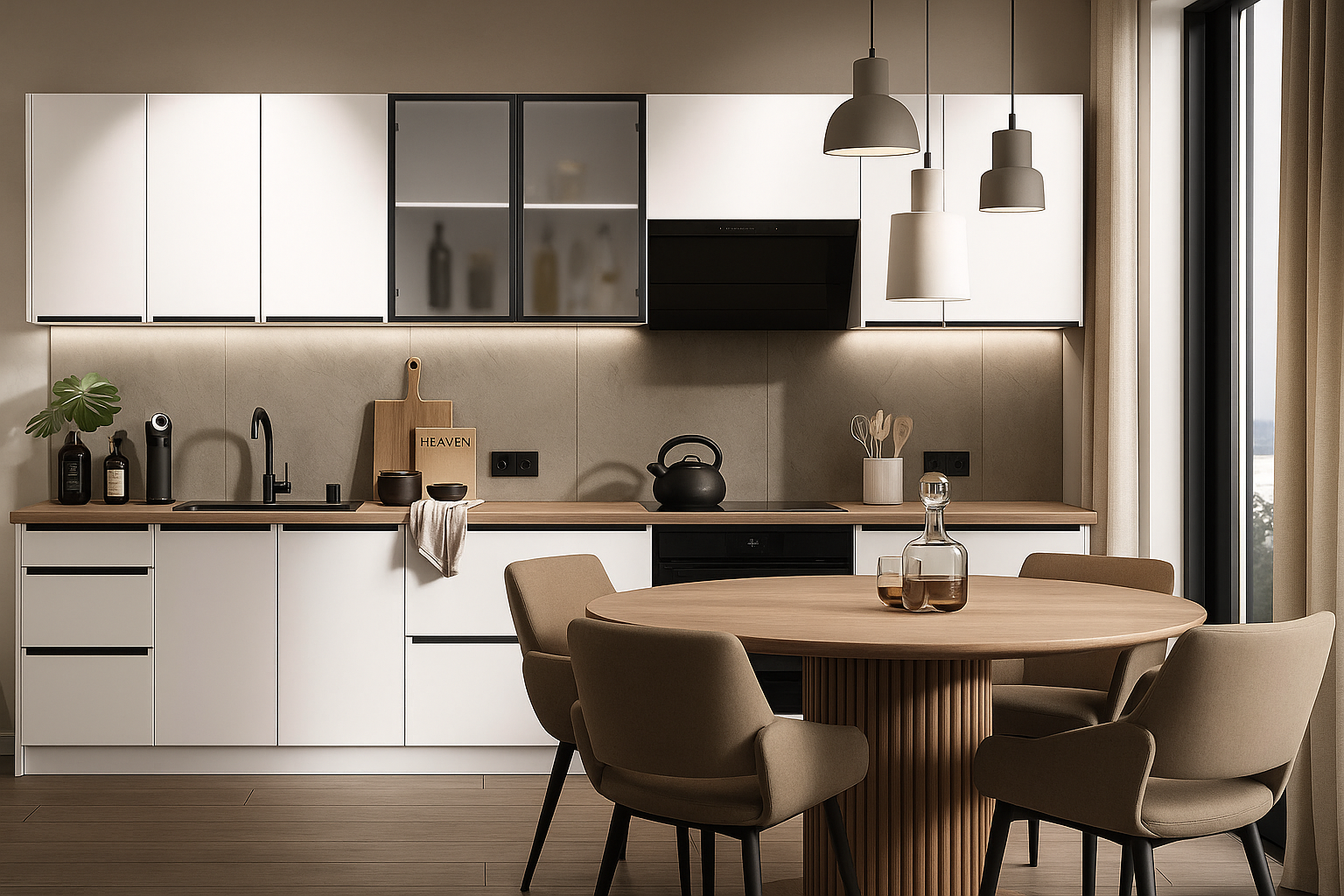 Štýlová kuchynská linka CELESTINA v nadčasovom farebnom prevedení rozžiari Vašu kuchyňu. CELESTINA je moderná biela kuchynská linka, ktorá je kombinovaná s čiernou farbou frézovania. Trendový dizajn a nadčasová farebná kombinácia zaručí, že táto kuchynská linka bude moderná aj o niekoľko rokov.Skrinky kuchynskej linky sú vyrobené z kvalitnej 18 mm LTD dosky. Spodné skrinky majú výškovo nastaviteľné nožičky. Kovový rám dvierok presklenej hornej skrinky je v odtieni čierny metal. Kuchynská linka disponuje bezúchytovým systémom otvárania dvierok, čo umožňujú vyfrézované dvierka. (viď.foto)Farebné prevedenie:Korpus: bielyDvierka: biela matná + čierne frézovanie Kovový rám dvierok: čierny metalKuchynská linka CELESTINA obsahuje:Horné skrinky:TINA digestorová skrinka š60/v40/h32TINA jednodverová skrinka š40/v72/h32TINA dvojdverová skrinka š60/v72/h32TINA dvojdverová skrinka š80/v72/h32TINA presklená skrinka š80/v72/h32Dolné skrinky:TINA skrinka s troma zásuvkami š40/v81,6/h46TINA dvojdverová skrinka š60/v81,6/h46, bielaTINA drezová skrinka š80/v81,6/h46TINA skrinka s dvoma zásuvkami š80/v81,6/h46Drez, sokel a pracovná doska NIE JE súčasťou zostavy, je potrebné ich dokúpiť (viď. Odporúčané produkty)Dodávame v demonte s návodom na montáž.