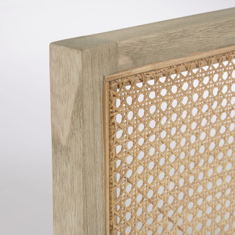 Čelo postele Rexit je vyrobené z exotického dreva Mindi s lakovaným povrchom, vďaka ktorému je odolné a pevné. Čelo postele je vyrobené z ratanu. Objavte krásu rustikálneho štýlu so značkou Kave Home.