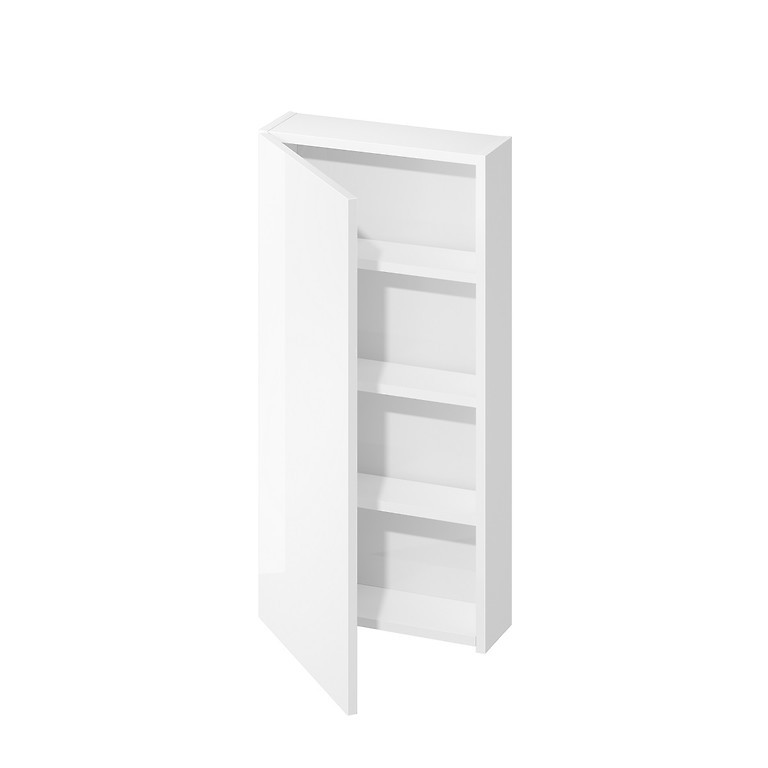 Závesná skrinka s dvierkami, ktorá je praktickým miestom na odloženie drobnej kozmetiky – vo vnútri 3 praktické police. Skriňa má bezúchytkový systém otvárania dvierok a tiché „ soft close “. Čelo a korpus sú vyrobené z lakovanej drevotriesky.