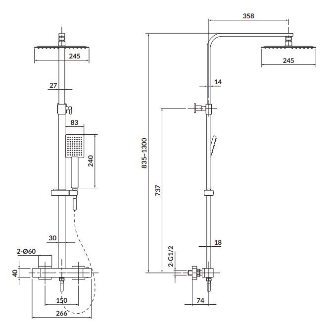 Sprchový stĺp s termostatickou batériou CITY, hranatý, chróm (S951-341)