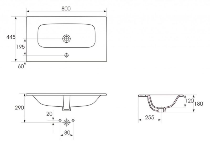 Zápustné keramické umývadlo MODUO 80 (K116-044)