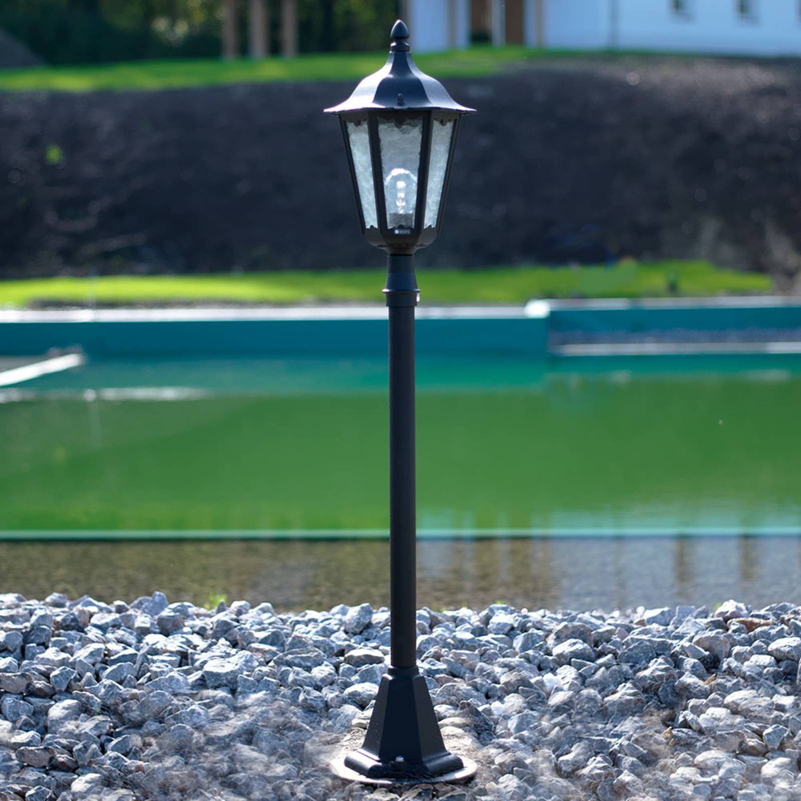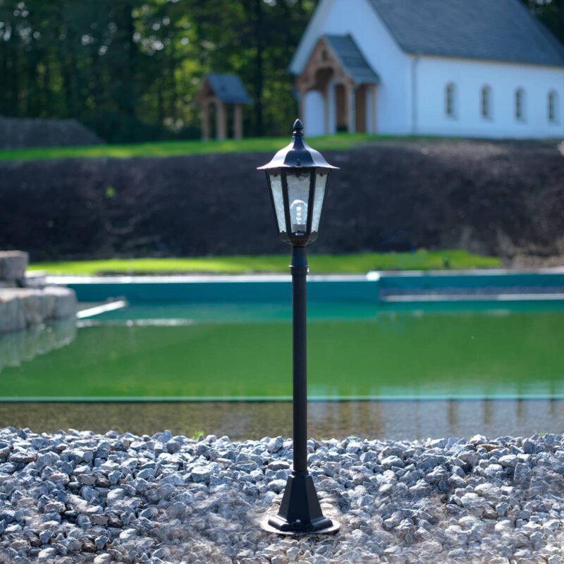 Cestné svetlo 4142 vyrobené z hliníka s čírym sklom Svetlá od tohto výrobcu spĺňajú najvyššie štandardy kvality, pretože sú vyrobené iba z vybraných materiálov a vyrobené v Nemecku. Cestné svetlo 4142, ktorého tienidlo na lampu v klasickom dizajne lucerny, je vyrobené z liateho hliníka a katedrálneho skla. tienidlo na lampu s vložkami z číreho skla umožňuje čo najširšie rozptýlenie svetla. To zaisťuje spoľahlivé a dobré osvetlenie. Cestné svietidlo je možné namontovať na základ alebo ukotviť do zeme pomocou základne pre inštaláciu na zemi (pozri príslušenstvo, položka č. 4001014).