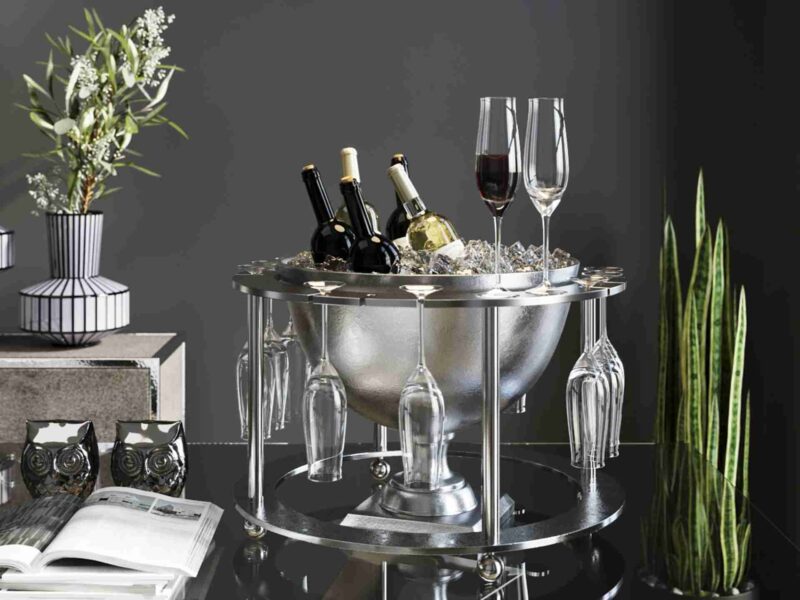 Originálna nádoba na chladenie vína v striebornom prevedení.