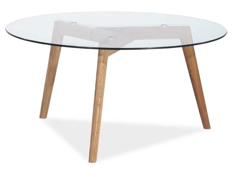 CHILLE L2 okrúhly sklenený konferenčný stolík, sklo / dub