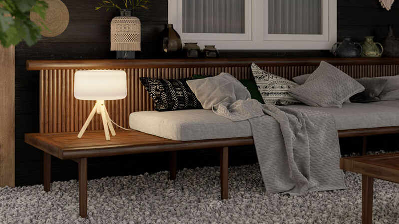 Dizajnová stolná lampa vhodná do interiéru aj exteriéru.