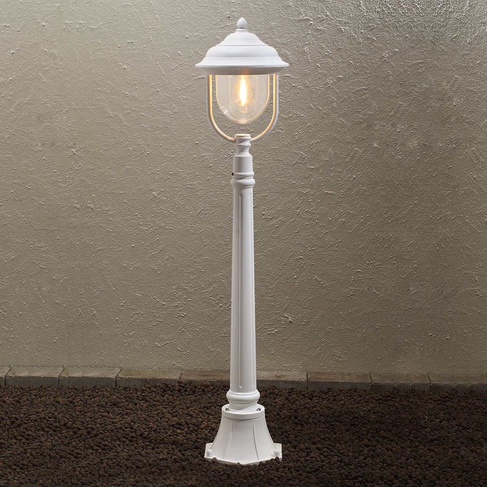 Chodníkové svietidlo Parma dodáva exteriéru romantický nádych Klasické chodníkové svietidlo Parma vyrobené z hliníka. Číre sklenené tienidlo na lampu zaručí optimálne osvetlenie. Atraktívne tvarované tienidlo na lampu a zdobenie na svietidle a stĺpiku dodávajú lampe jemne nostalgický vzhľad.