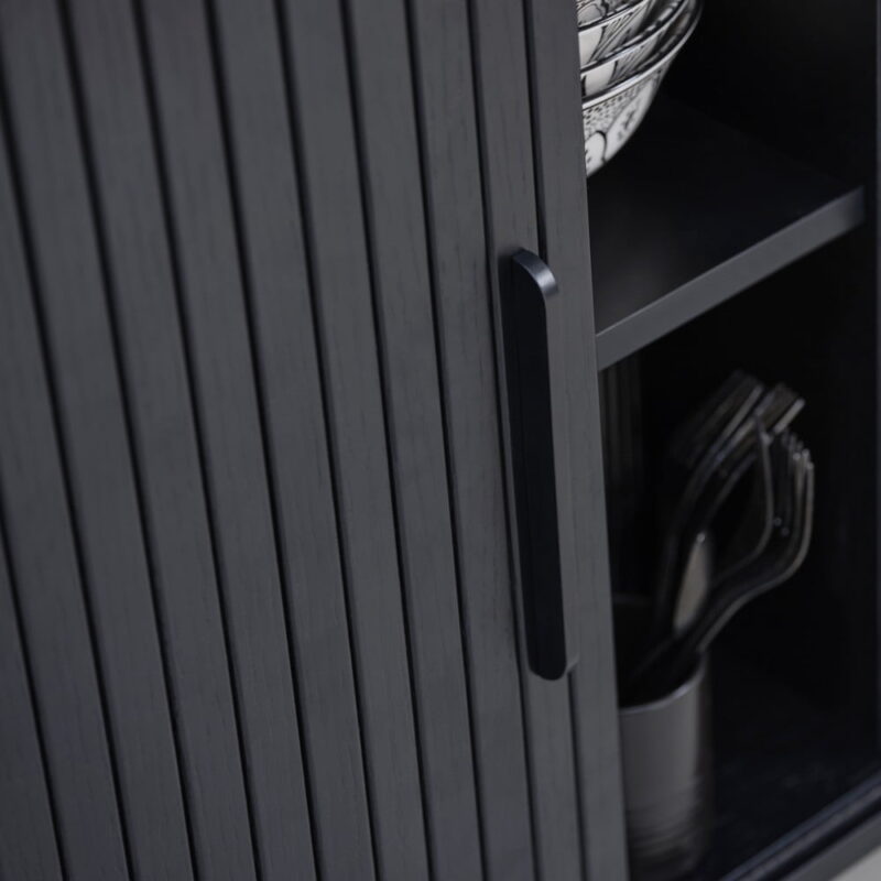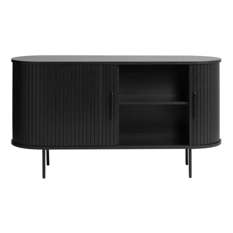 Domovská stránka » Katalóg » Čierna nízka komoda v dekore duba s posuvnými dverami 140×76 cm Nola – Unique Furniture